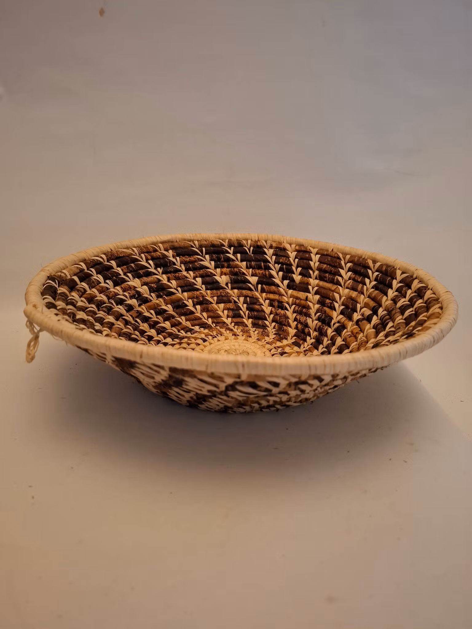 The artistic basket shows the mastery of women's skills in Uganda. Made out of banana fiber.